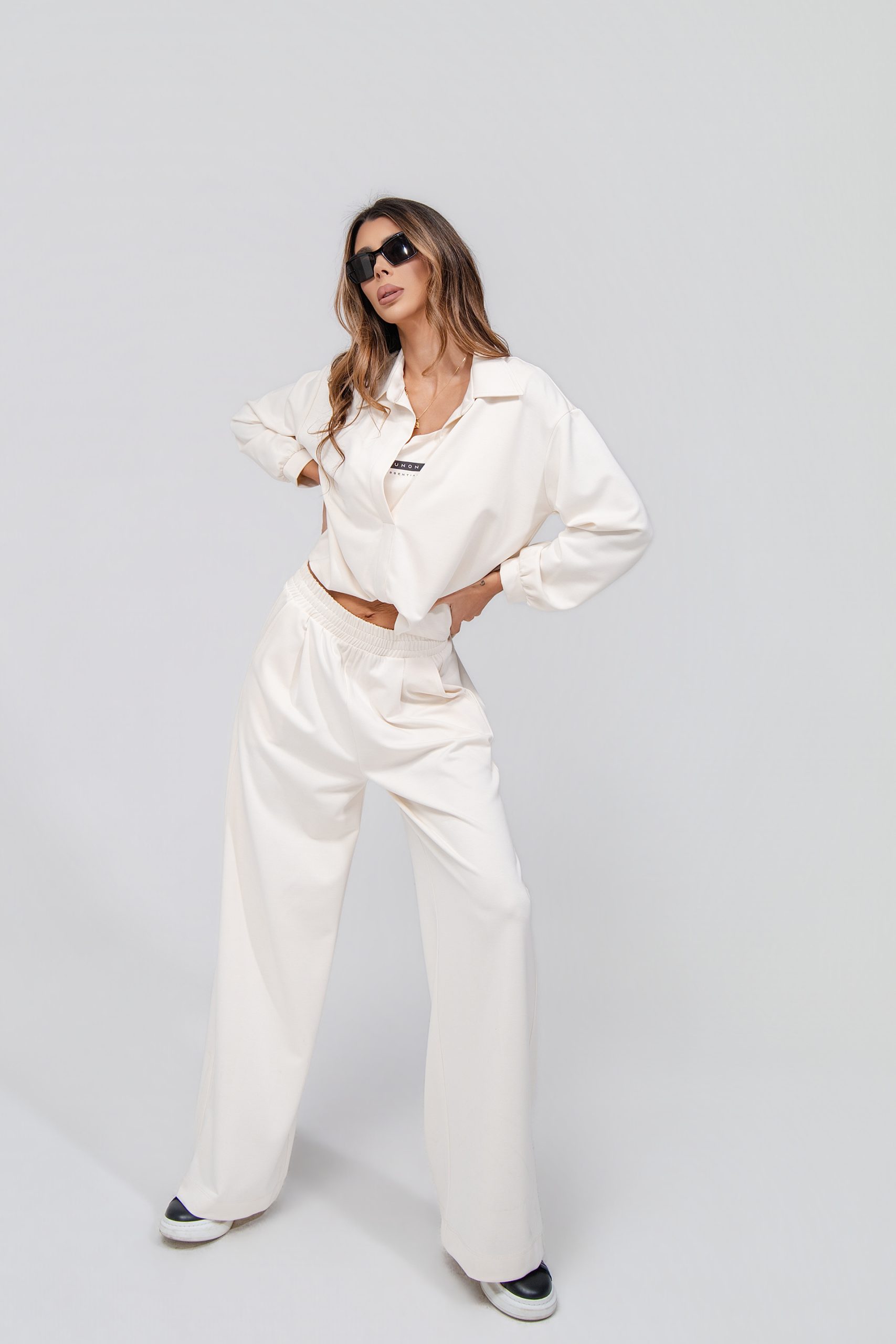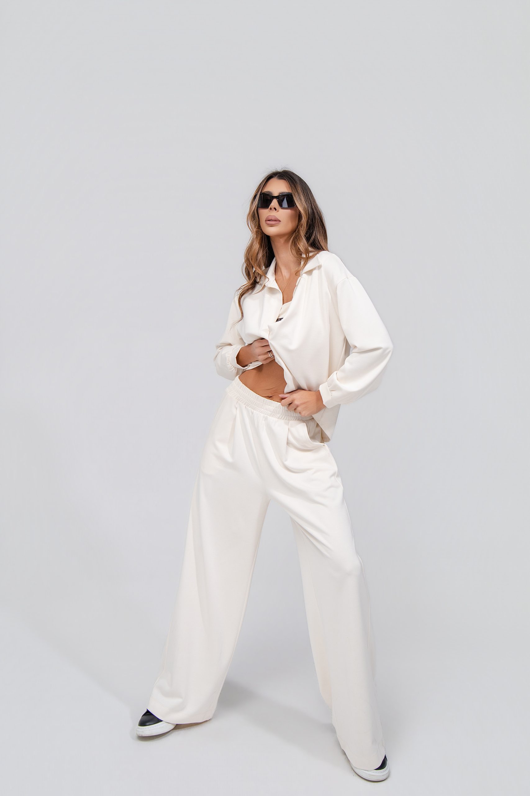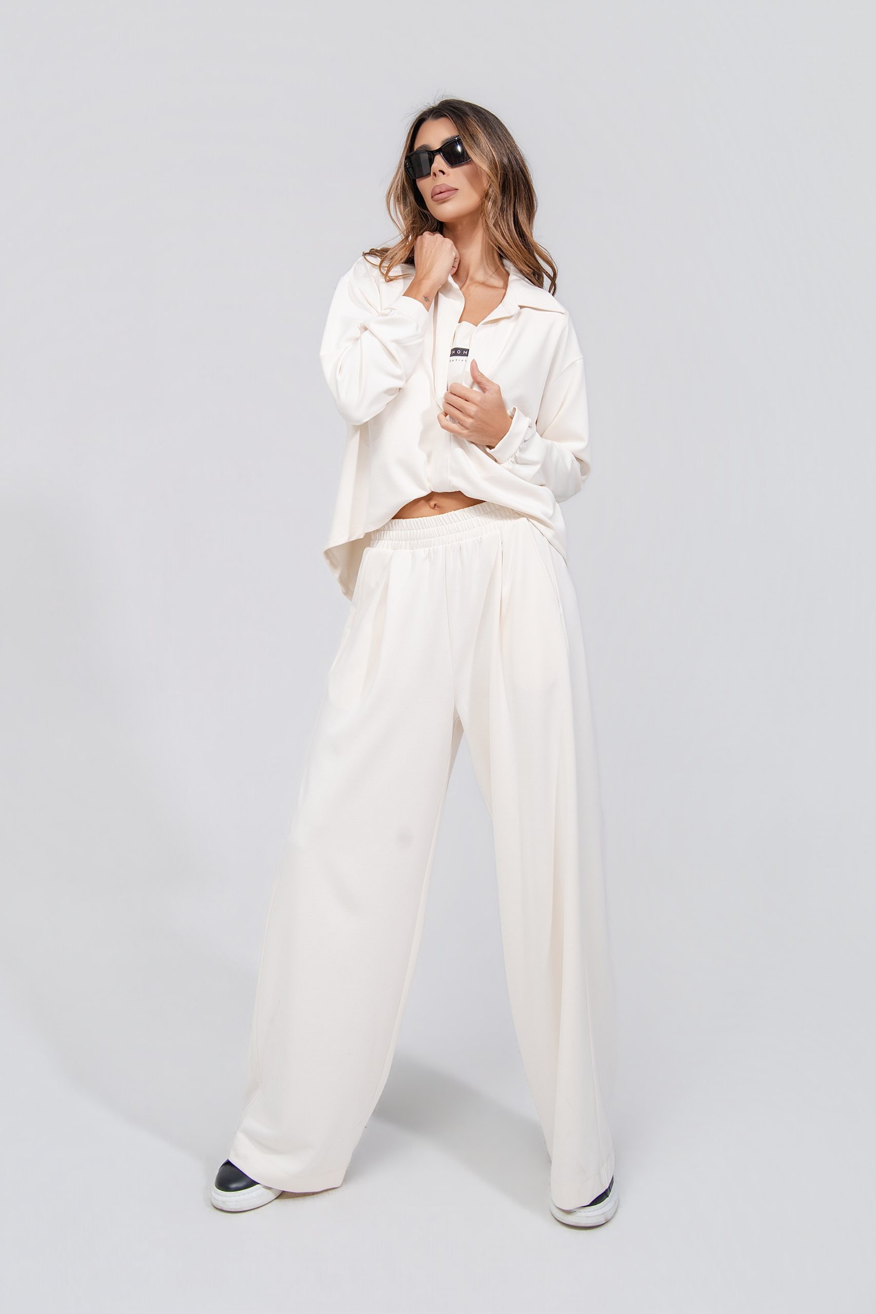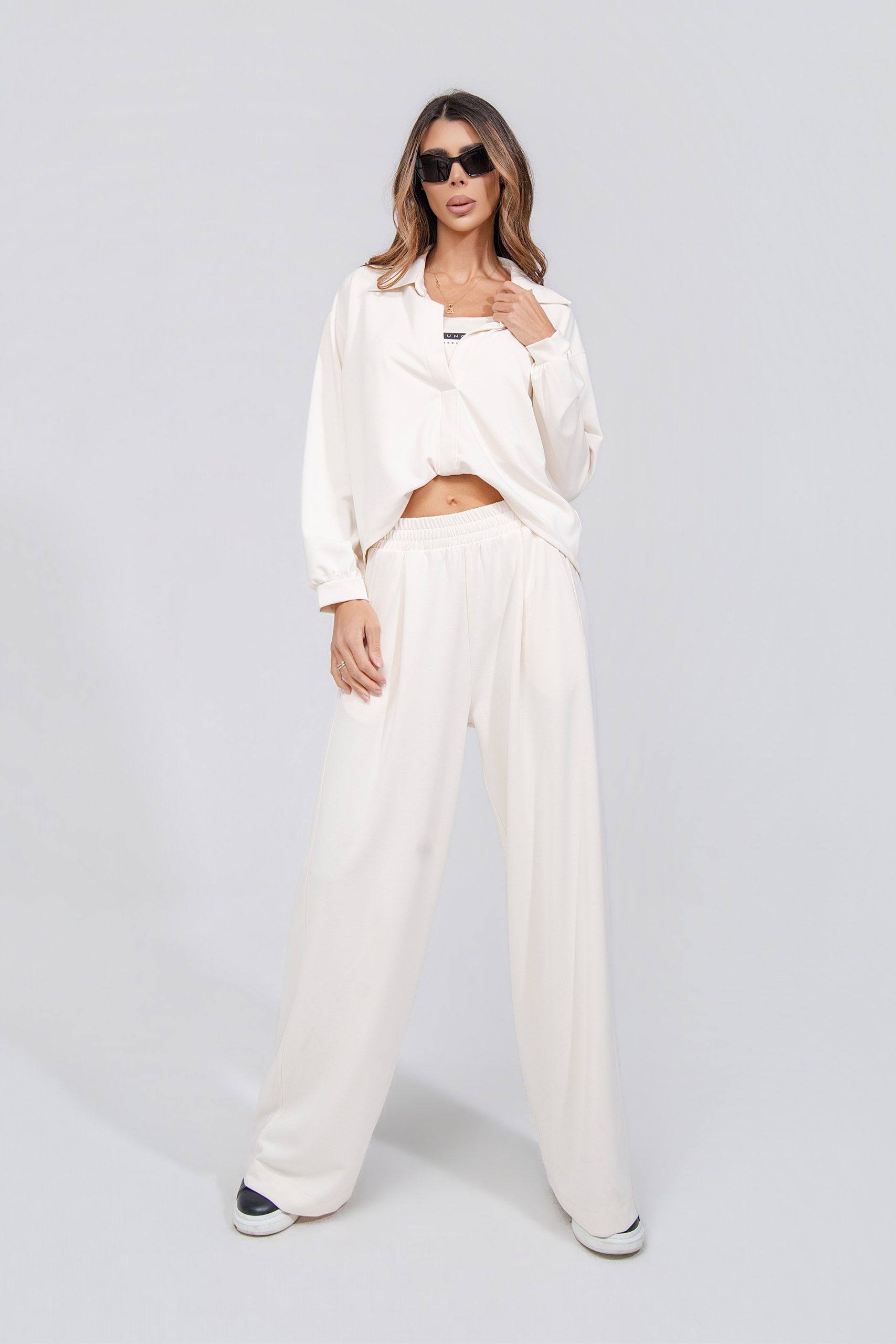 • ШИРОКА КОШУЛА НА ДОЛГИ РАКАВИ • СО V ИЗРАЗ И ЈАКА • • СОСТАВ • 47% ВИСКОЗА • 45% ПОЛИЕСТЕР • 8% ЕЛАСТИН
